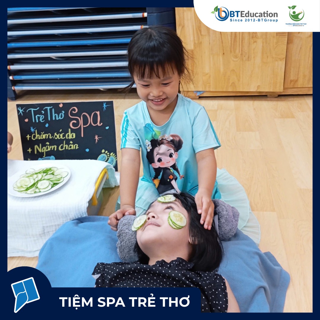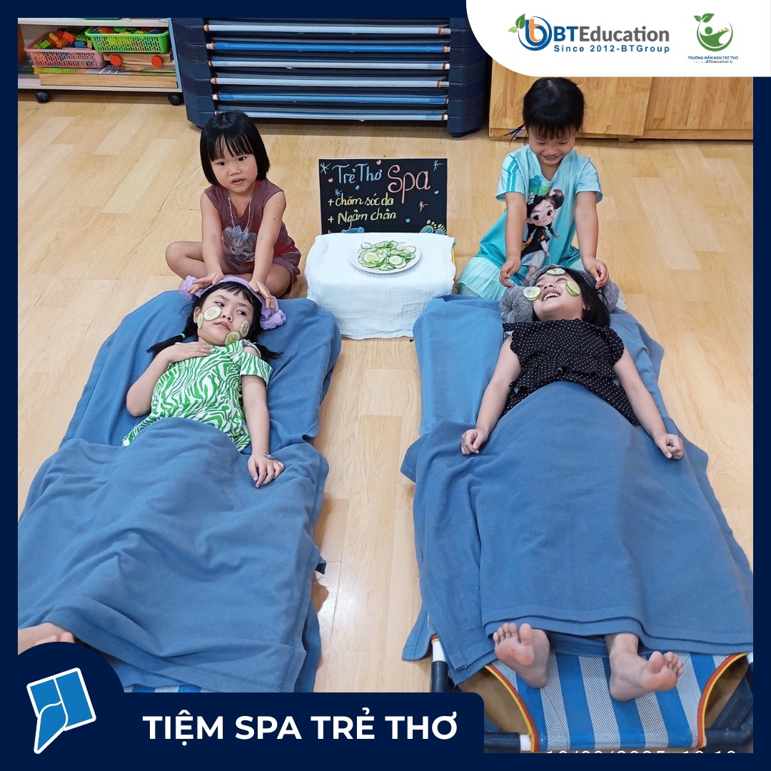 ♀️✨ “Tiệm spa Trẻ Thơ” xin kính chào quý khách! Hôm nay, các “thượng đế nhí” được trải nghiệm dịch vụ chăm sóc – thư giãn – cười giòn tan từ đầu tới chân . Massage thì nhẹ nhàng, skincare thì tận tâm, bảo đảm khách hàng rời spa với tinh thần tươi rói . Vừa lòng khách đến, hài lòng khách đi! Khởi đầu yêu thương – Starting with Love ̛ ̛̀ : 0847.988.980 ☎️ ̂̉ : 0968.988.980 #tuyểnsinh #họcbổng #khaigiảng #giảmhọcphí #mầmnon #BTGroup #BTEducation #TruongMamNonTreTho