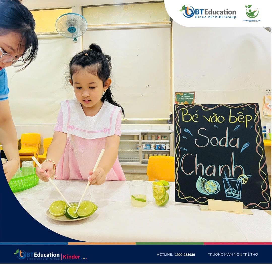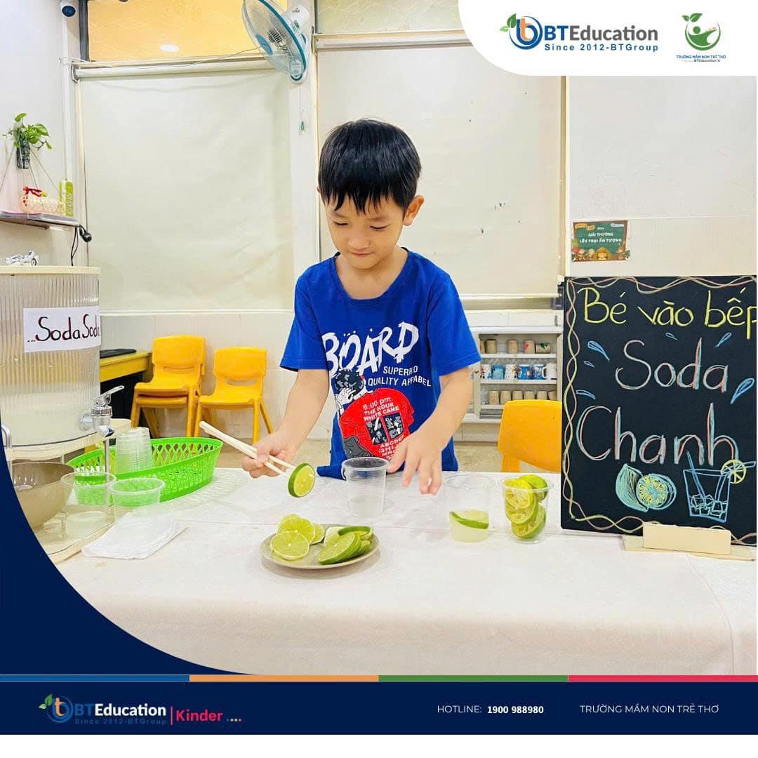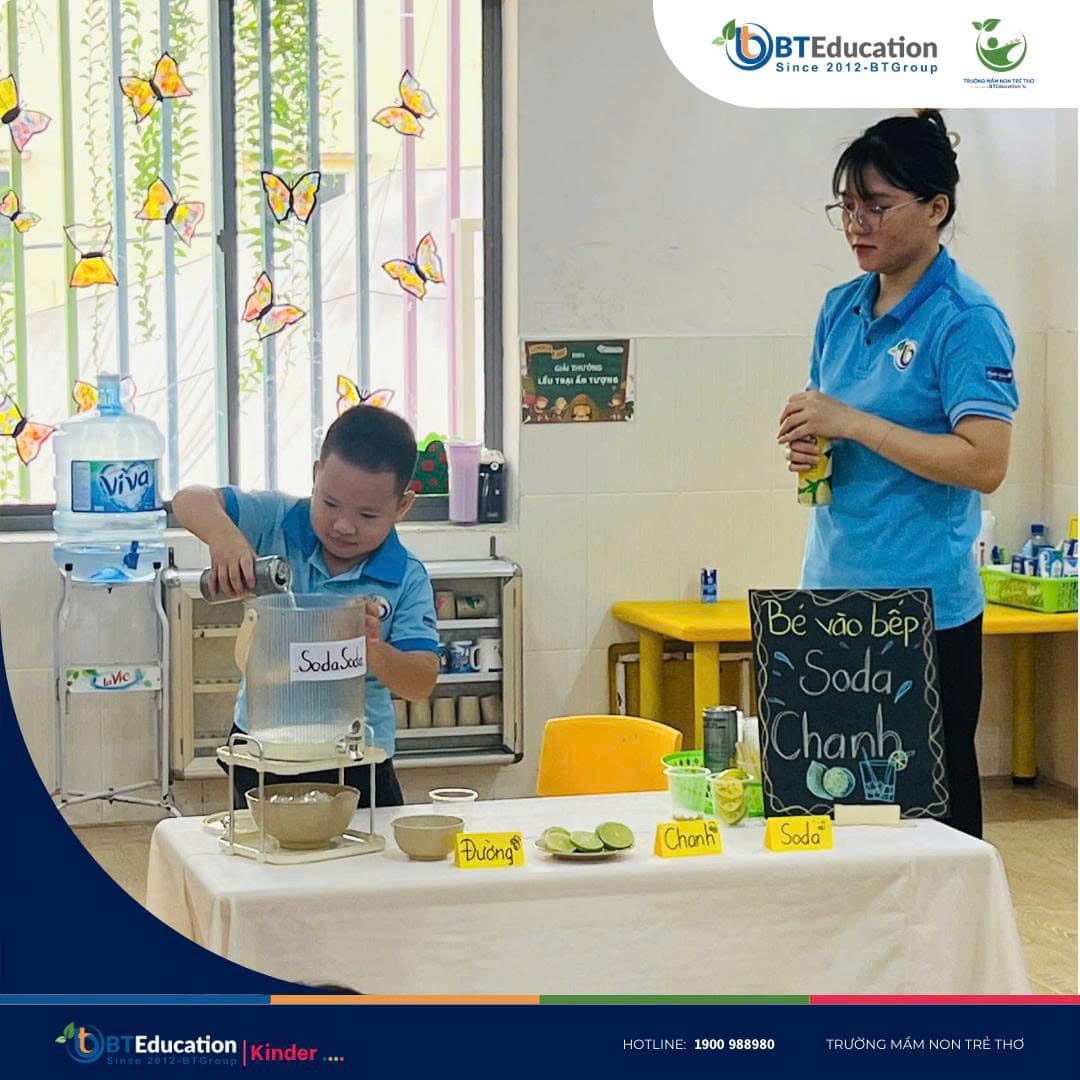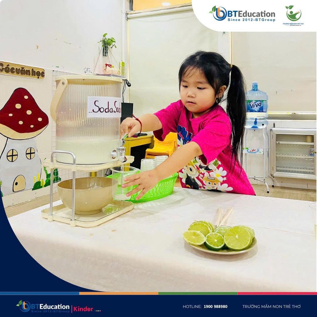 ✨ Bartender nhí chính thức ra mắt! ✨ Tự tay vắt chanh, rót soda, pha trộn khéo léo – Bé đã biến những nguyên liệu quen thuộc thành ly soda chanh mát lạnh cực “chill” . Không chỉ là trò chơi, hoạt động này còn giúp các bạn nhỏ học thêm sự sáng tạo, khéo léo và niềm vui từ chính đôi tay mình . Ai mà ngờ trong lớp lại có những “nghệ nhân pha chế nhí” tài ba đến vậy chứ . Khởi đầu yêu thương – Starting with Love ̛ ̛̀ : 0847.988.980 ☎️ ̂̉ : 0968.988.980 #tuyểnsinh #họcbổng #khaigiảng #giảmhọcphí #mầmnon #BTGroup #BTEducation #TruongMamNonTreTho