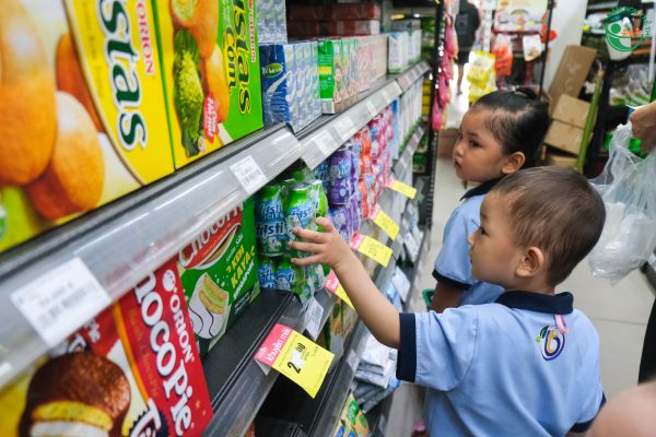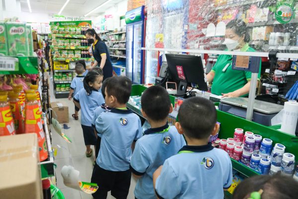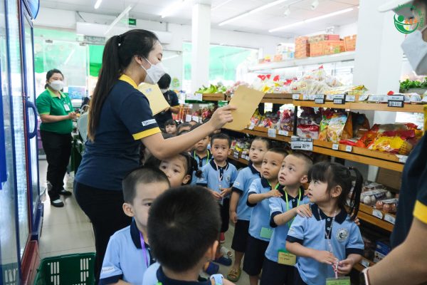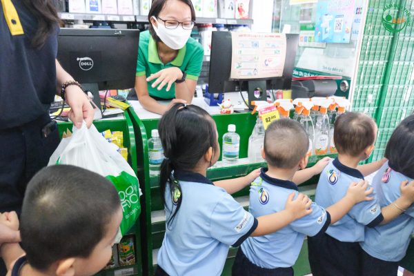 🌳 Trong suốt quá trình trải nghiệm, cô giáo đã khéo léo hướng dẫn cho các con những kỹ năng cơ bản khi đi siêu thị như: chào hỏi người lớn, nghe theo hướng dẫn của người lớn, lựa chọn hàng hóa, xếp hàng, tính tiền… Bên cạnh đó, các con cũng được học tiếng anh thông qua cách gọi tên các sản phẩm và tự chọn những món ăn vặt theo sở thích của mình.