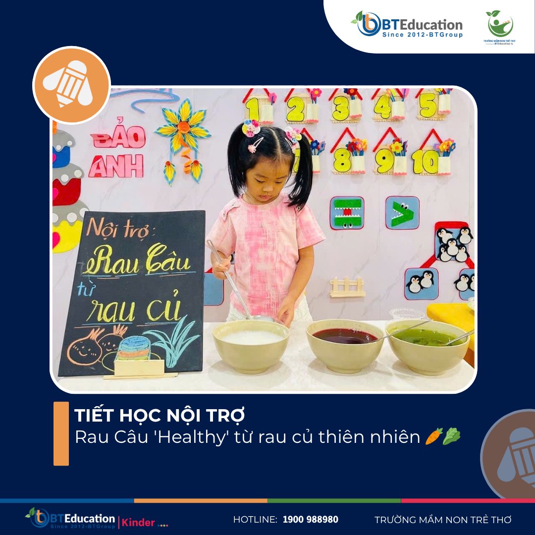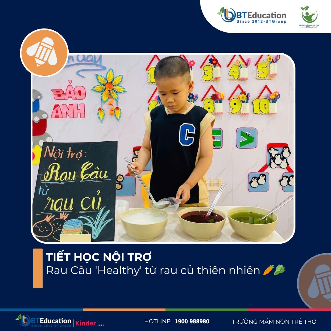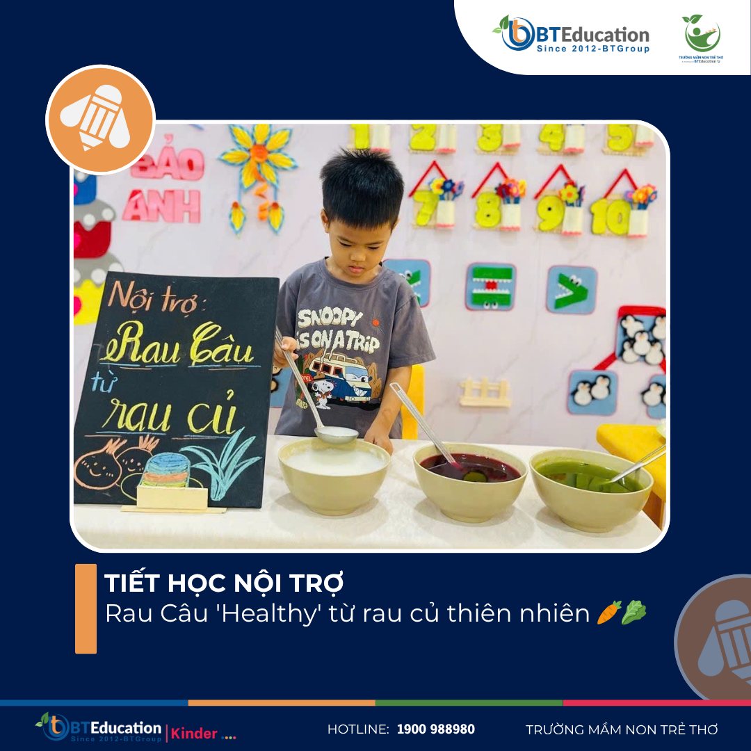 Cuối cùng thì ngày này cũng đã đến: Các Sếp Nhí chính thức xắn tay áo vào bếp thực hiện công cuộc tự chủ ẩm thực! ‍ ‍ Hôm nay là tiết học nội trợ với dự án Rau Câu ‘Healthy’ từ rau củ thiên nhiên . Nhìn các Đầu bếp Nhí hăng say từ khâu chọn màu (củ dền, lá dứa) đến khâu đổ khuôn, Ba Mẹ có ‘nôn’ được thưởng thức thành quả này không ạ? Món quà lớn nhất của buổi học này không chỉ là chiếc rau câu mát lạnh, mà còn là tinh thần ‘tự lập, tự cường’ và sự hợp tác của các bạn nhỏ. Thật sự các con đã lớn thật rồi, Mẹ ơi! ❤️ ————————————- Trường Mầm Non Trẻ Thơ Khởi đầu yêu thương – Starting with Love Địa chỉ: 10/5 Xuân Diệu, Phường Tân Sơn Nhất, Tp.HCM Hotline trường: 0847.988.980 ☎️ Hotline tuyển sinh: 0968.988.980 Website: tretho.edu.vn #BTEducation #BTGroup #TruongMamNonTreTho