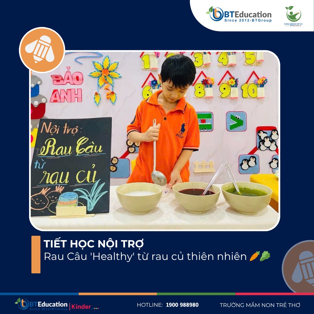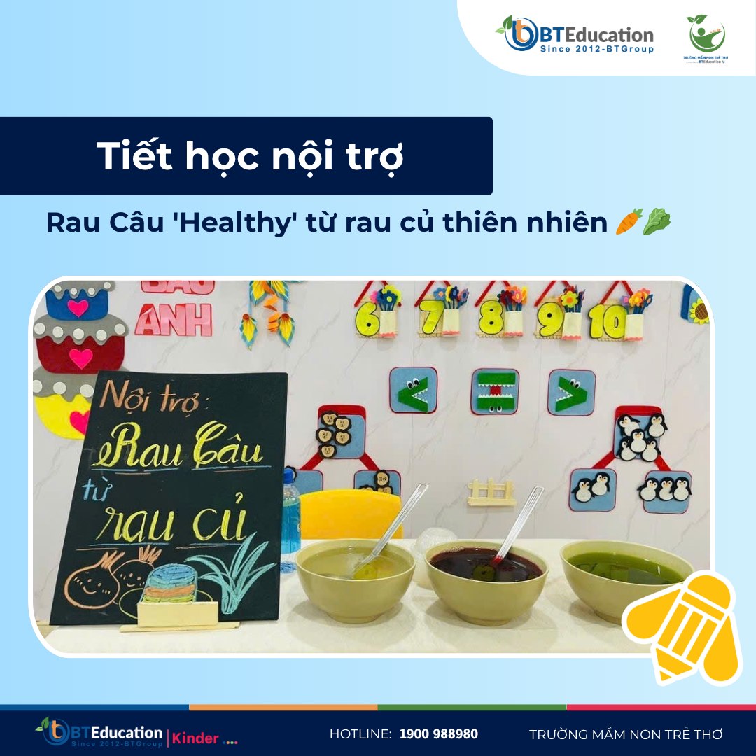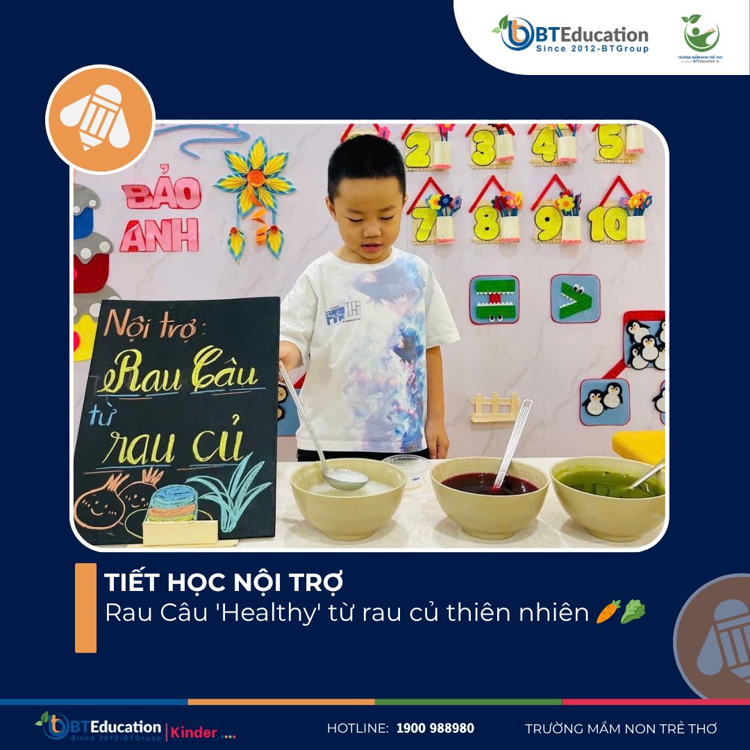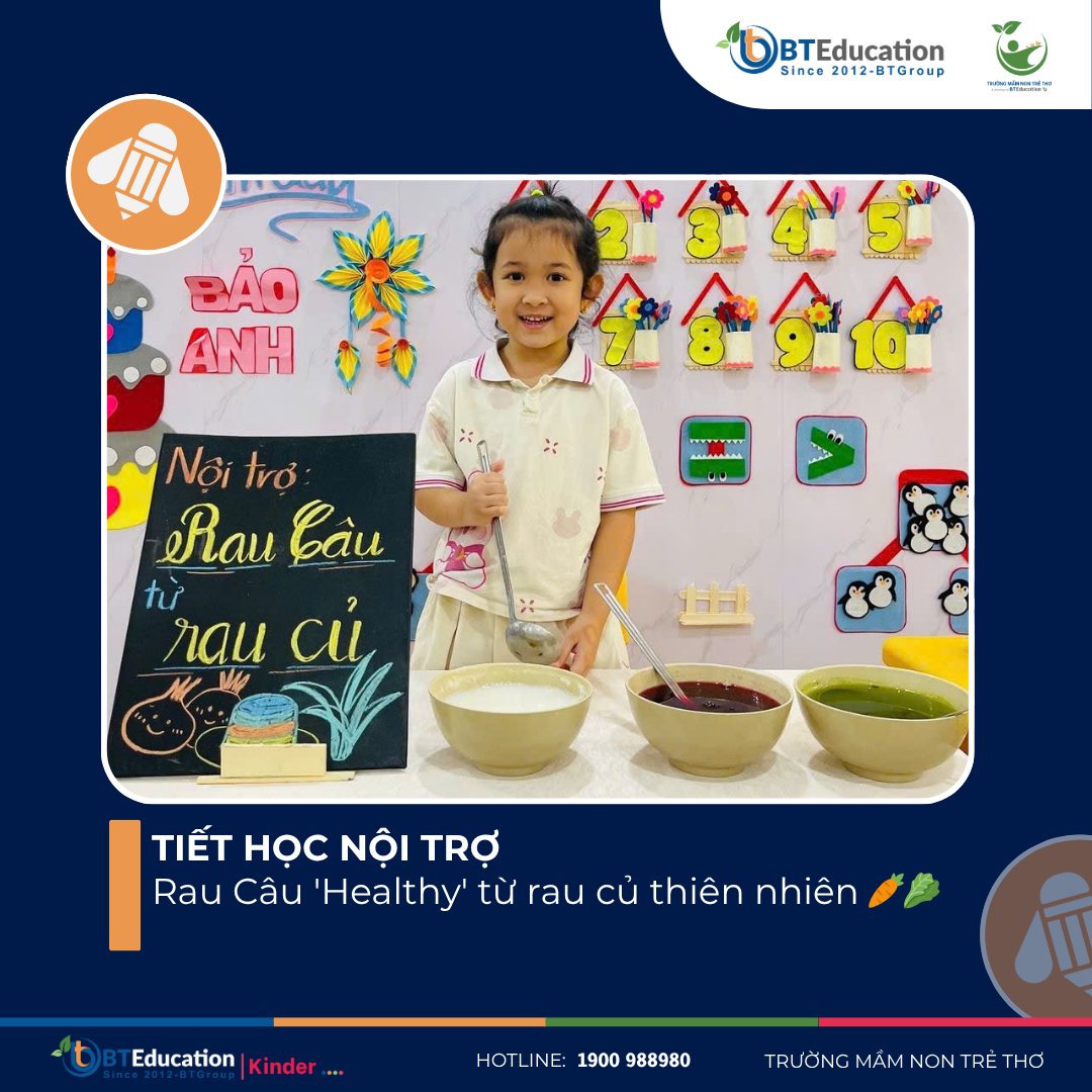 Cuối cùng thì ngày này cũng đã đến: Các Sếp Nhí chính thức xắn tay áo vào bếp thực hiện công cuộc tự chủ ẩm thực! ‍ ‍ Hôm nay là tiết học nội trợ với dự án Rau Câu ‘Healthy’ từ rau củ thiên nhiên . Nhìn các Đầu bếp Nhí hăng say từ khâu chọn màu (củ dền, lá dứa) đến khâu đổ khuôn, Ba Mẹ có ‘nôn’ được thưởng thức thành quả này không ạ? Món quà lớn nhất của buổi học này không chỉ là chiếc rau câu mát lạnh, mà còn là tinh thần ‘tự lập, tự cường’ và sự hợp tác của các bạn nhỏ. Thật sự các con đã lớn thật rồi, Mẹ ơi! ❤️ ————————————- Trường Mầm Non Trẻ Thơ Khởi đầu yêu thương – Starting with Love Địa chỉ: 10/5 Xuân Diệu, Phường Tân Sơn Nhất, Tp.HCM Hotline trường: 0847.988.980 ☎️ Hotline tuyển sinh: 0968.988.980 Website: tretho.edu.vn #BTEducation #BTGroup #TruongMamNonTreTho