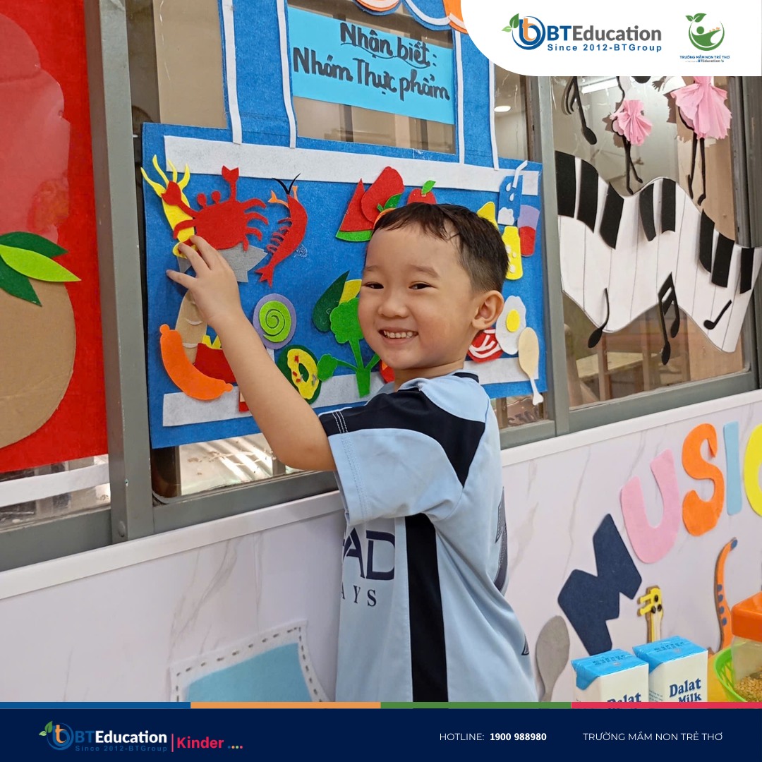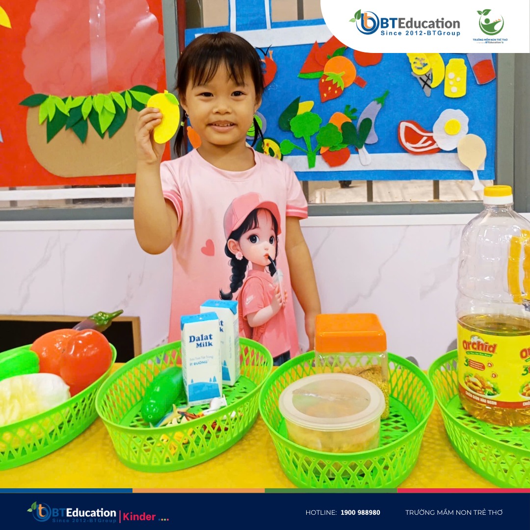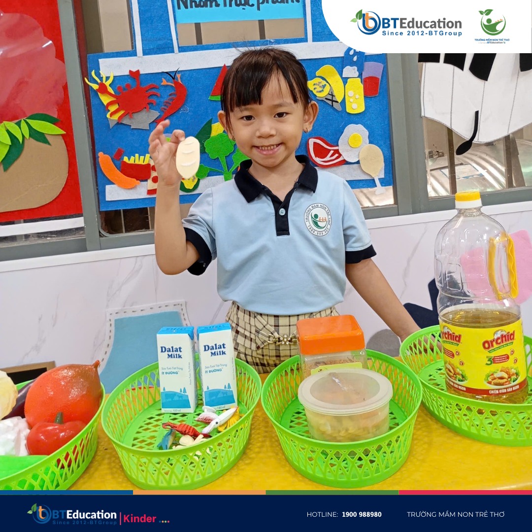 KHÁM PHÁ DINH DƯỠNG CÙNG BÉ – BÍ KÍP NHỎ CHO BA MẸ Trong giờ học hôm nay, các Bé lớp Chồi non đã được tìm hiểu về những nhóm chất dinh dưỡng cần thiết như tinh bột, chất béo, vitamin và khoáng chất. Không chỉ là bài học, mà còn là “chìa khóa” để Ba Mẹ hiểu thêm về cách nuôi dưỡng Bé yêu trong giai đoạn vàng phát triển. ✨ Một vài tips nhỏ cho Ba Mẹ: Tinh bột: Nguồn năng lượng chính giúp Bé vui chơi, học tập cả ngày. Hãy đa dạng giữa cơm, bún, khoai, yến mạch… Chất béo: Giúp phát triển não bộ, nhưng Ba Mẹ nên ưu tiên dầu thực vật, cá béo, hạn chế đồ chiên nhiều dầu. Vitamin & khoáng chất: Có nhiều trong rau củ, trái cây, sữa, hạt… giúp tăng sức đề kháng, chiều cao và trí tuệ. Đừng quên nước – yếu tố quan trọng để duy trì mọi hoạt động trong cơ thể Bé. Giai đoạn mầm non chính là lúc cơ thể và trí não phát triển nhanh nhất. Vì vậy, một chế độ dinh dưỡng cân bằng, phong phú sẽ giúp Bé khỏe mạnh, thông minh và tràn đầy năng lượng mỗi ngày ❤️. Khởi đầu yêu thương – Starting with Love ̛ ̛̀ : 0847.988.980 ☎️ ̂̉ : 0968.988.980 #tuyểnsinh #họcbổng #khaigiảng #giảmhọcphí #mầmnon #BTGroup #BTEducation #TruongMamNonTreTho