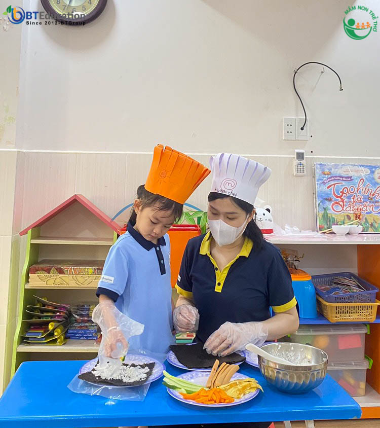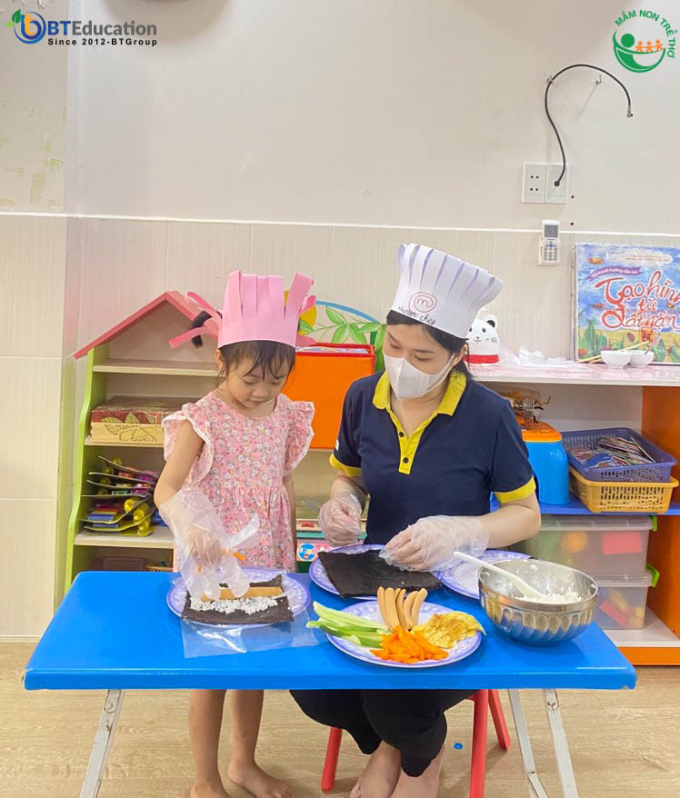 BÉ VÀO BẾP LÀM CƠM CUỘN‘
