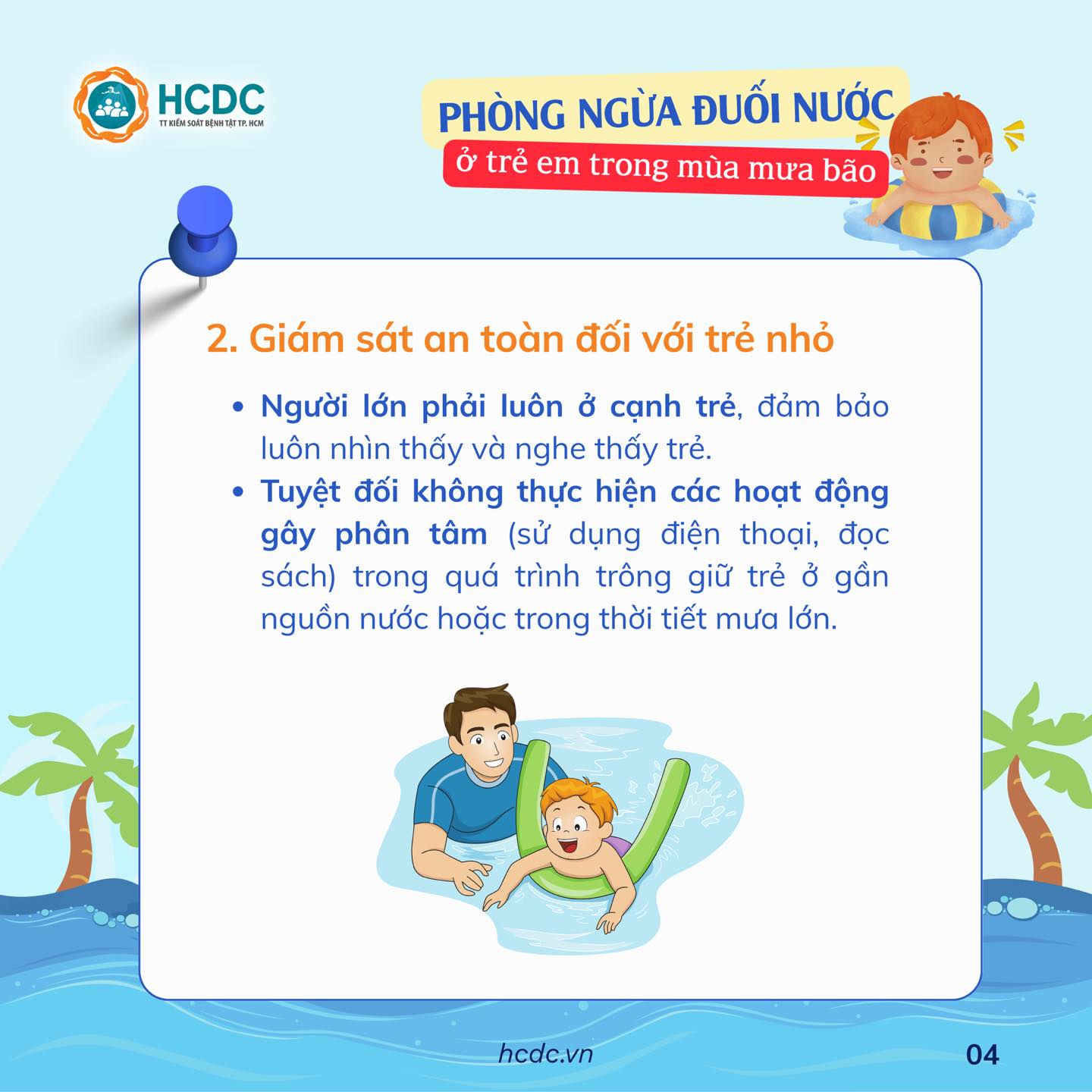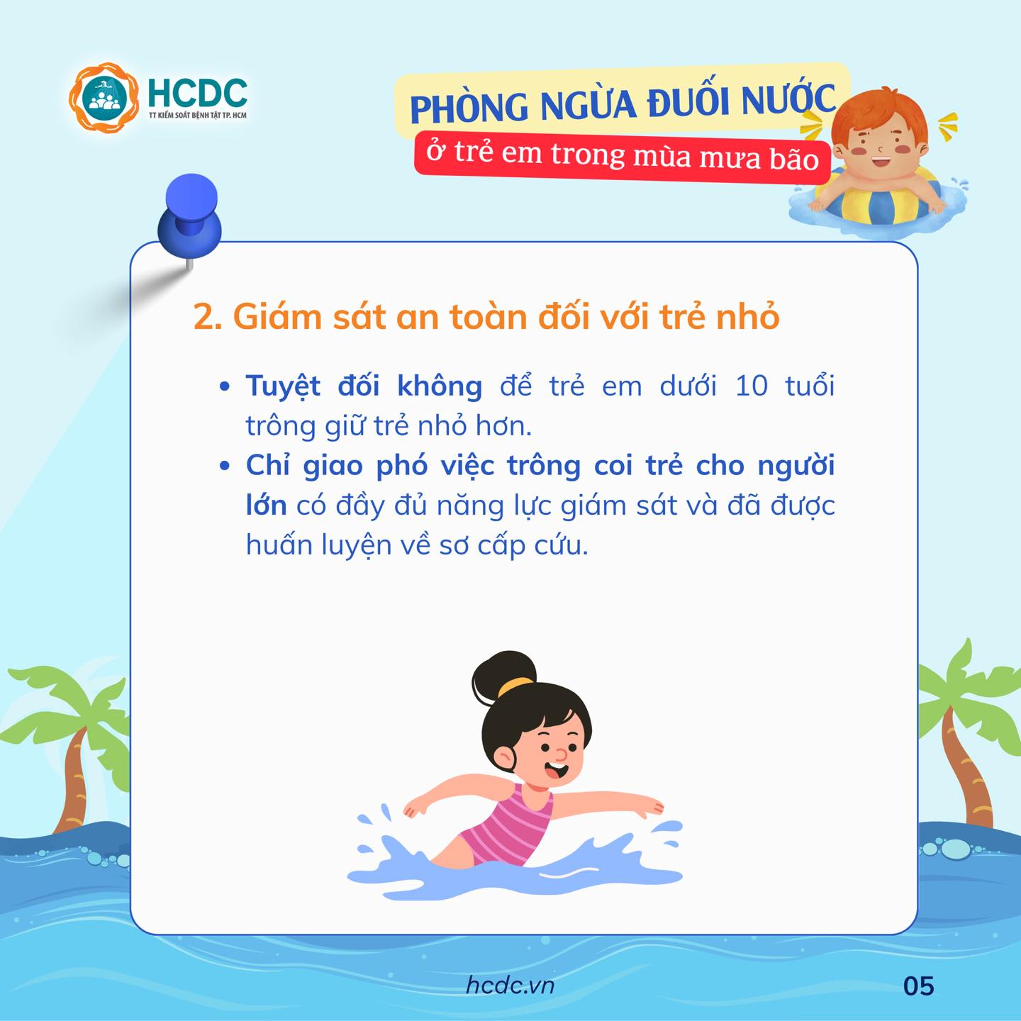 Mưa bão làm gia tăng các khu vực chứa nước (vũng nước đọng, rãnh nước chảy xiết, hố ga bị ngập…), từ đó làm tăng nguy cơ tai nạn đuối nước ở trẻ em.