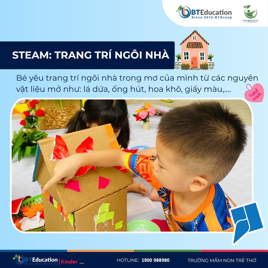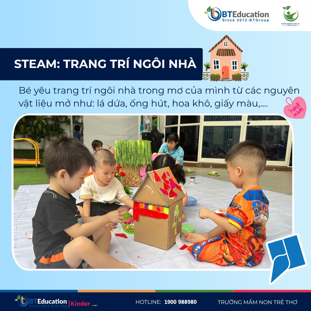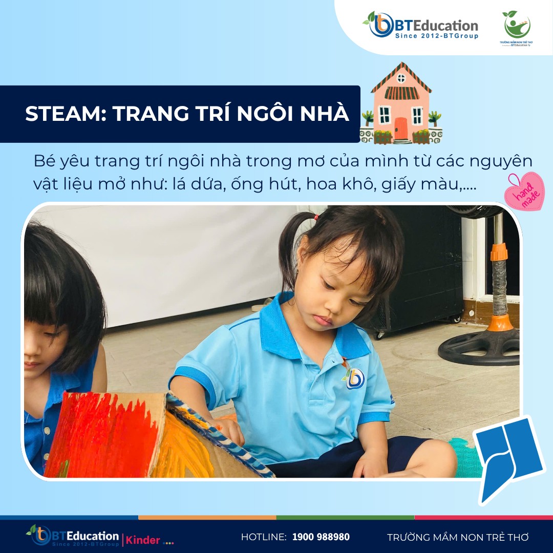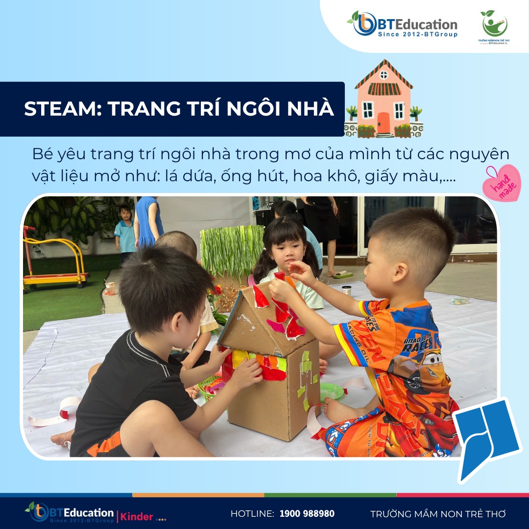 Tuyệt vời! Hôm nay, công ty thiết kế và xây dựng của các Sếp Nhí chính thức nhận dự án ‘Ngôi Nhà Trong Mơ’ theo phong cách ‘Hòa mình cùng Thiên nhiên’! ✨ Tiết học STEAM này thực sự thử thách tinh thần sáng tạo của lớp Chồi non. Các bạn đã vận dụng mọi kỹ năng sơn màu, dán trang trí để thổi hồn, biến các vật liệu thành một tác phẩm có ‘hồn’ và cực kỳ rực rỡ. Nhìn các bạn nhỏ tỉ mỉ, tập trung cao độ, Ba Mẹ mới thấy các con đã lớn và khéo tay đến mức nào! Ngôi nhà có thể hơi ‘mini’ nhưng chất lượng nghệ thuật và tâm huyết thì phải gọi là 5 sao! ⭐ Ba Mẹ có ‘order’ một căn không ạ? ————————————- Trường Mầm Non Trẻ Thơ Khởi đầu yêu thương – Starting with Love Địa chỉ: 10/5 Xuân Diệu, Phường Tân Sơn Nhất, Tp.HCM Hotline trường: 0847.988.980 ☎️ Hotline tuyển sinh: 0968.988.980 Website: tretho.edu.vn #BTEducation #BTGroup #TruongMamNonTreTho