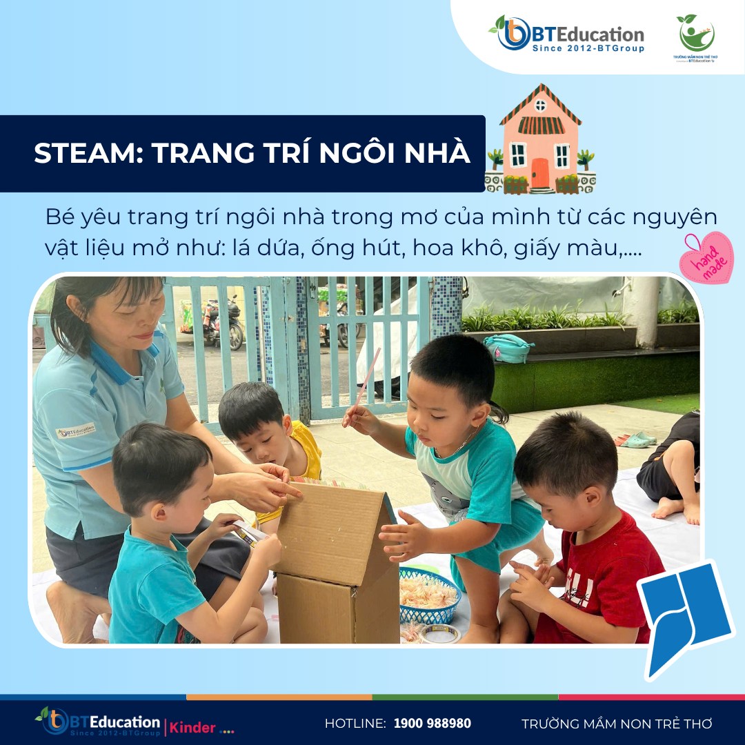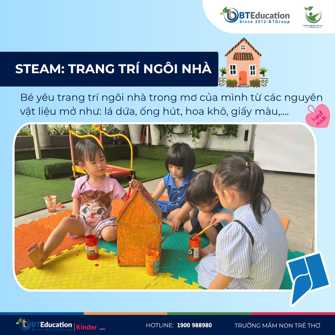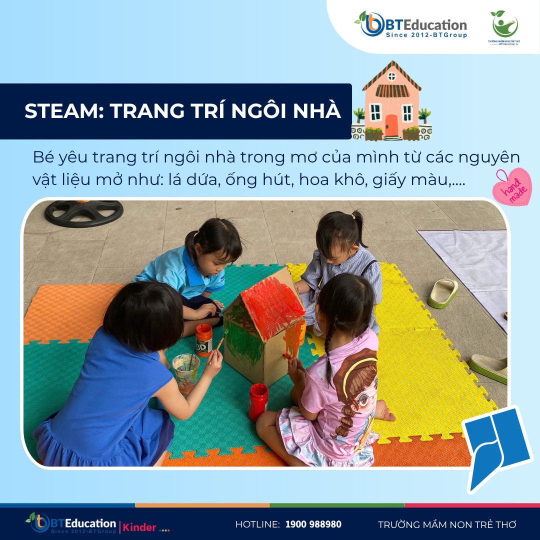 Tuyệt vời! Hôm nay, công ty thiết kế và xây dựng của các Sếp Nhí chính thức nhận dự án ‘Ngôi Nhà Trong Mơ’ theo phong cách ‘Hòa mình cùng Thiên nhiên’! ✨ Tiết học STEAM này thực sự thử thách tinh thần sáng tạo của lớp Chồi non. Các bạn đã vận dụng mọi kỹ năng sơn màu, dán trang trí để thổi hồn, biến các vật liệu thành một tác phẩm có ‘hồn’ và cực kỳ rực rỡ. Nhìn các bạn nhỏ tỉ mỉ, tập trung cao độ, Ba Mẹ mới thấy các con đã lớn và khéo tay đến mức nào! Ngôi nhà có thể hơi ‘mini’ nhưng chất lượng nghệ thuật và tâm huyết thì phải gọi là 5 sao! ⭐ Ba Mẹ có ‘order’ một căn không ạ? ————————————- Trường Mầm Non Trẻ Thơ Khởi đầu yêu thương – Starting with Love Địa chỉ: 10/5 Xuân Diệu, Phường Tân Sơn Nhất, Tp.HCM Hotline trường: 0847.988.980 ☎️ Hotline tuyển sinh: 0968.988.980 Website: tretho.edu.vn #BTEducation #BTGroup #TruongMamNonTreTho