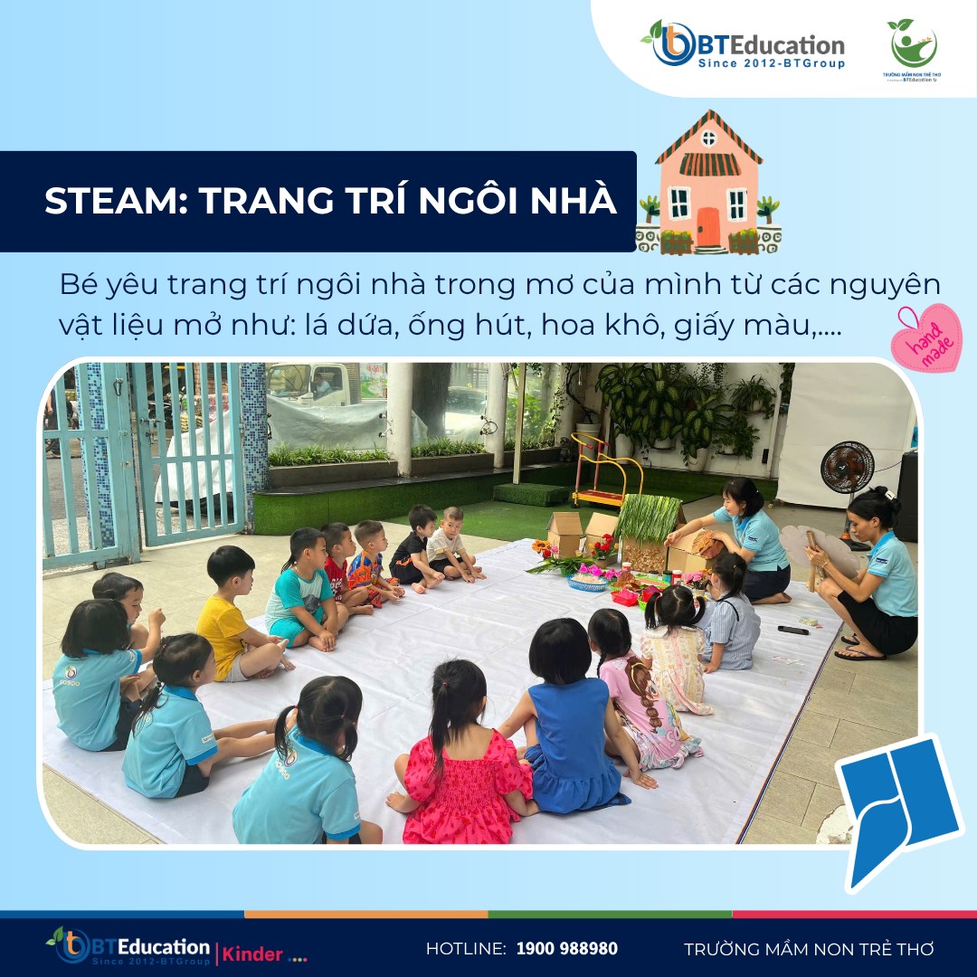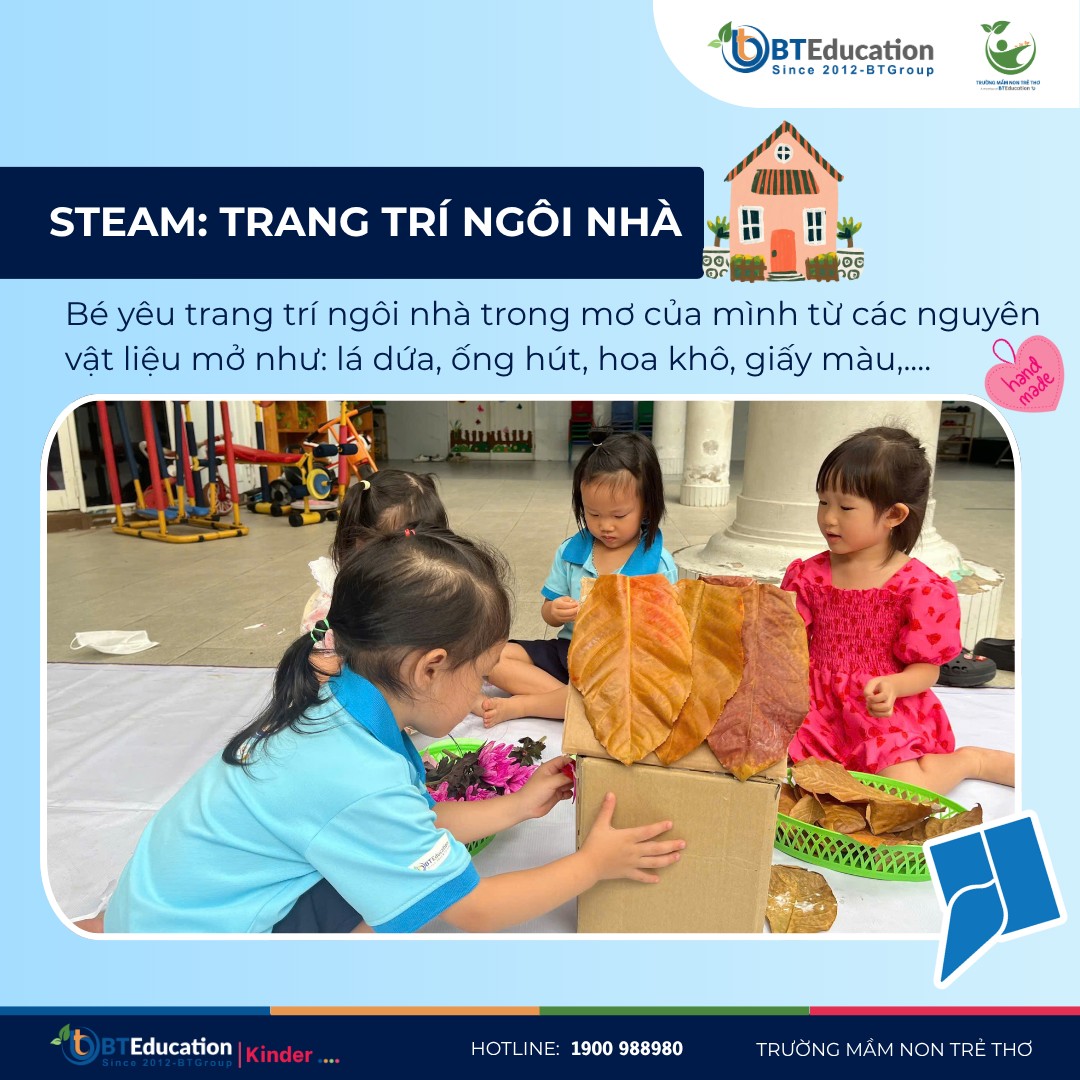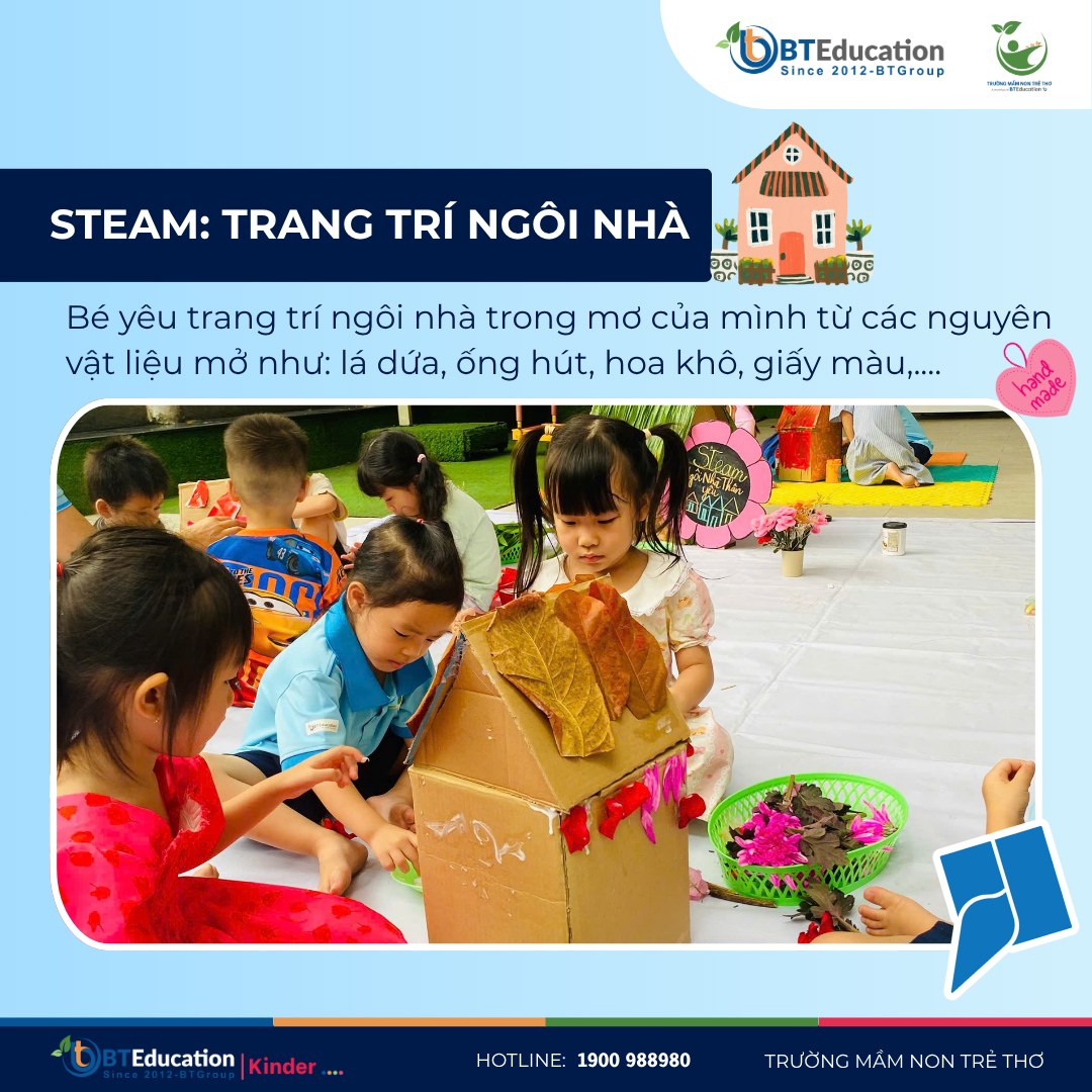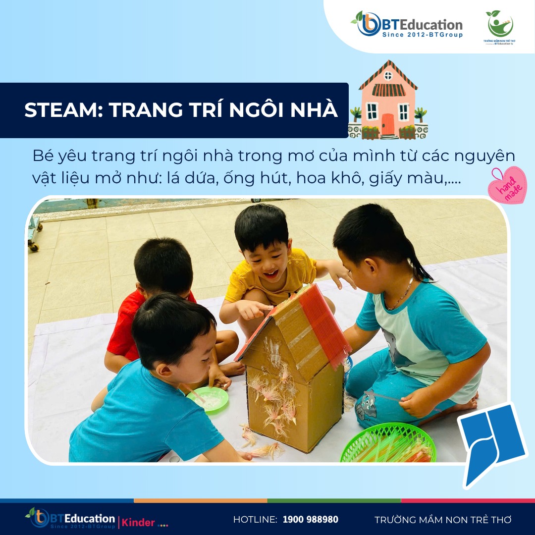 Tuyệt vời! Hôm nay, công ty thiết kế và xây dựng của các Sếp Nhí chính thức nhận dự án ‘Ngôi Nhà Trong Mơ’ theo phong cách ‘Hòa mình cùng Thiên nhiên’! ✨ Tiết học STEAM này thực sự thử thách tinh thần sáng tạo của lớp Chồi non. Các bạn đã vận dụng mọi kỹ năng sơn màu, dán trang trí để thổi hồn, biến các vật liệu thành một tác phẩm có ‘hồn’ và cực kỳ rực rỡ. Nhìn các bạn nhỏ tỉ mỉ, tập trung cao độ, Ba Mẹ mới thấy các con đã lớn và khéo tay đến mức nào! Ngôi nhà có thể hơi ‘mini’ nhưng chất lượng nghệ thuật và tâm huyết thì phải gọi là 5 sao! ⭐ Ba Mẹ có ‘order’ một căn không ạ? ————————————- Trường Mầm Non Trẻ Thơ Khởi đầu yêu thương – Starting with Love Địa chỉ: 10/5 Xuân Diệu, Phường Tân Sơn Nhất, Tp.HCM Hotline trường: 0847.988.980 ☎️ Hotline tuyển sinh: 0968.988.980 Website: tretho.edu.vn #BTEducation #BTGroup #TruongMamNonTreTho
