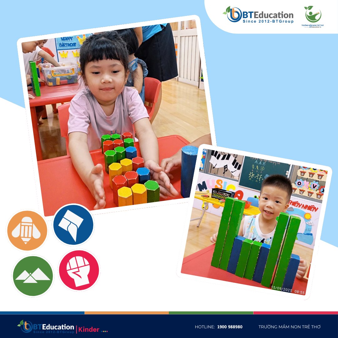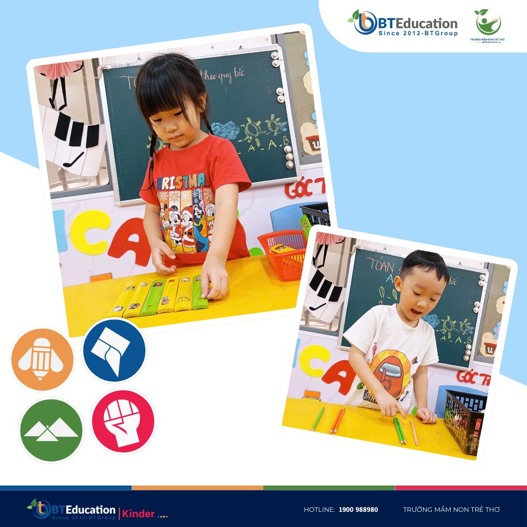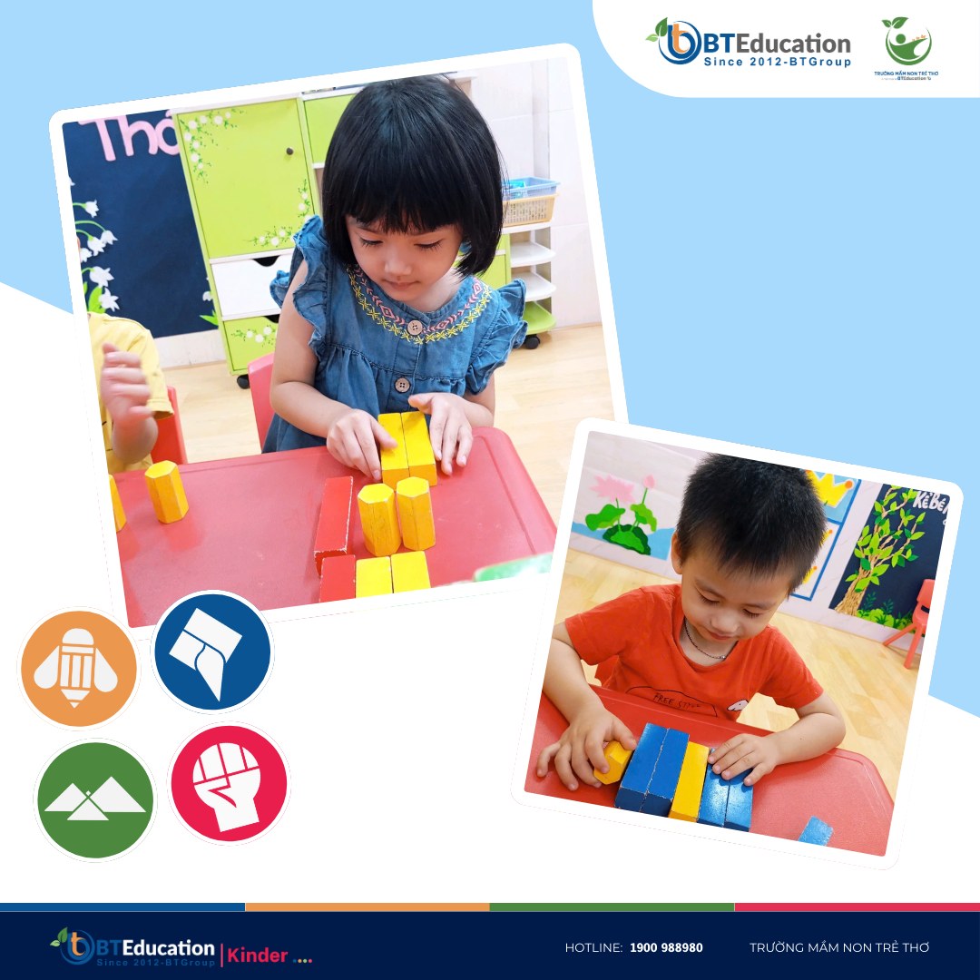 Xen kẽ thật vui – A-A-B! Hôm nay các Bé lớp Chồi Non đã khám phá quy tắc sắp xếp A-A-B cực thú vị . Ô tròn, que dài, màu xanh, màu đỏ… cứ thế mà xếp xen kẽ, trật tự đâu ra đó . Vừa học toán, vừa chơi trò chơi, các Bé vừa cười vừa reo: “Ơ, dễ mà vui ghê luôn đó cô ơi!” Những “nhà sắp xếp tí hon” của lớp mình đáng yêu quá phải không Ba Mẹ? Khởi đầu yêu thương – Starting with Love ̛ ̛̀ : 0847.988.980 ☎️ ̂̉ : 0968.988.980 #tuyểnsinh #họcbổng #khaigiảng #giảmhọcphí #mầmnon #BTGroup #BTEducation #TruongMamNonTreTho