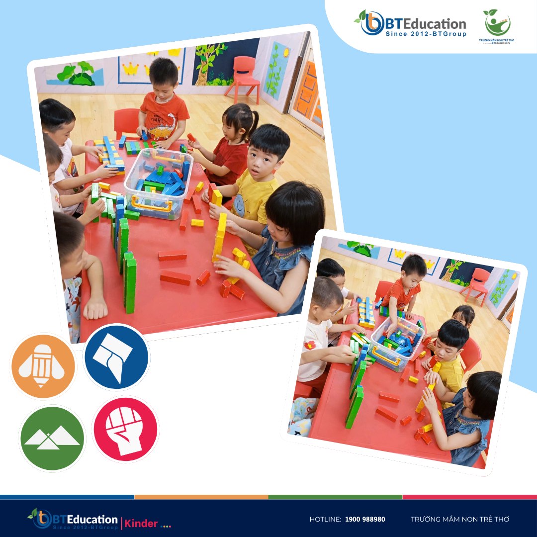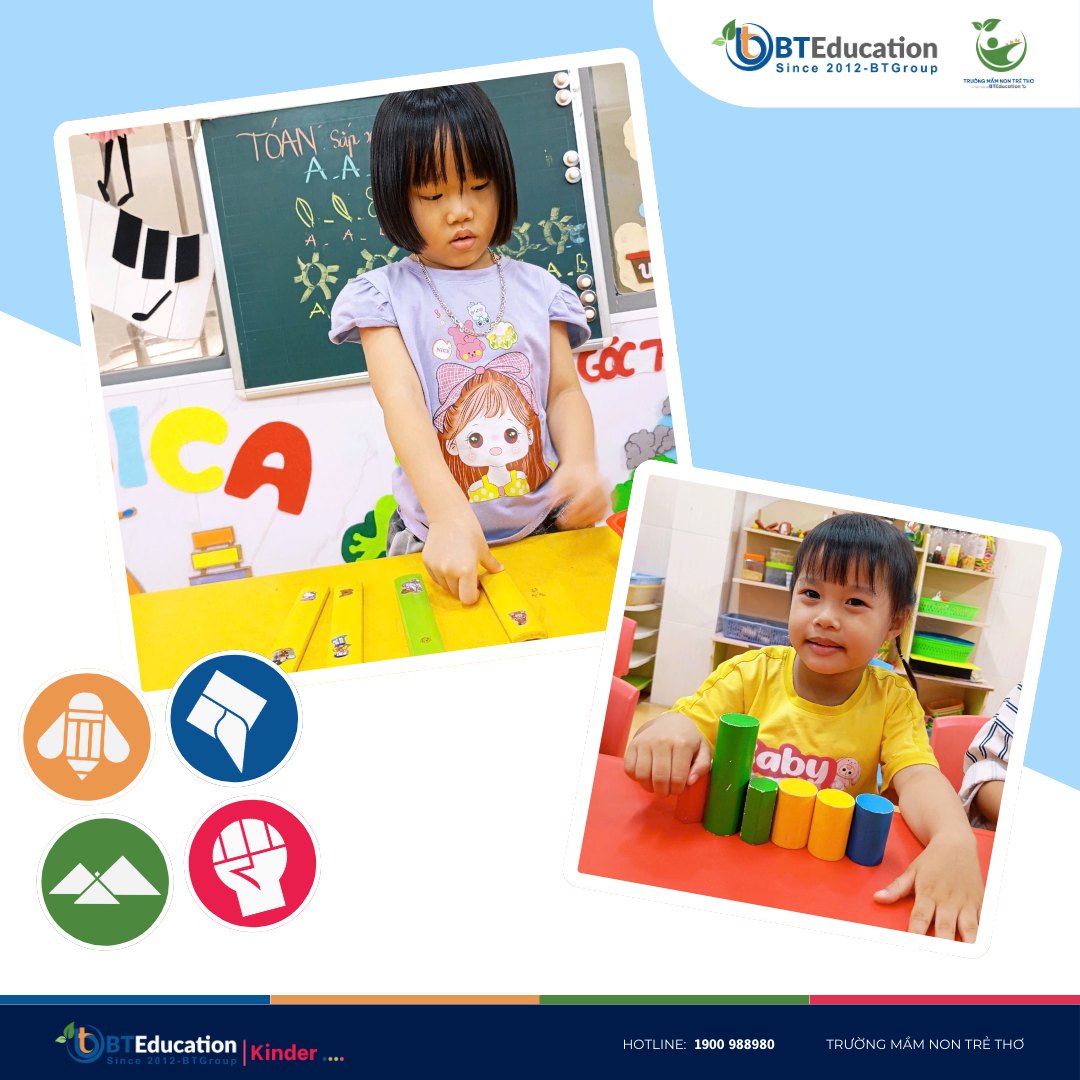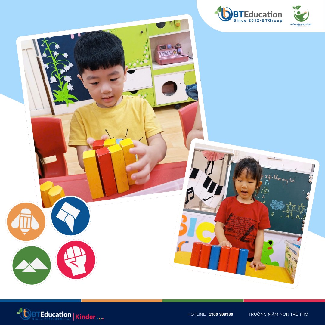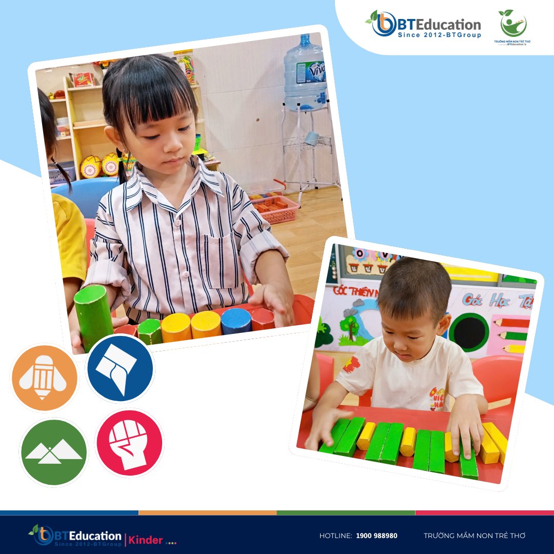 Xen kẽ thật vui – A-A-B! Hôm nay các Bé lớp Chồi Non đã khám phá quy tắc sắp xếp A-A-B cực thú vị . Ô tròn, que dài, màu xanh, màu đỏ… cứ thế mà xếp xen kẽ, trật tự đâu ra đó . Vừa học toán, vừa chơi trò chơi, các Bé vừa cười vừa reo: “Ơ, dễ mà vui ghê luôn đó cô ơi!” Những “nhà sắp xếp tí hon” của lớp mình đáng yêu quá phải không Ba Mẹ? Khởi đầu yêu thương – Starting with Love ̛ ̛̀ : 0847.988.980 ☎️ ̂̉ : 0968.988.980 #tuyểnsinh #họcbổng #khaigiảng #giảmhọcphí #mầmnon #BTGroup #BTEducation #TruongMamNonTreTho